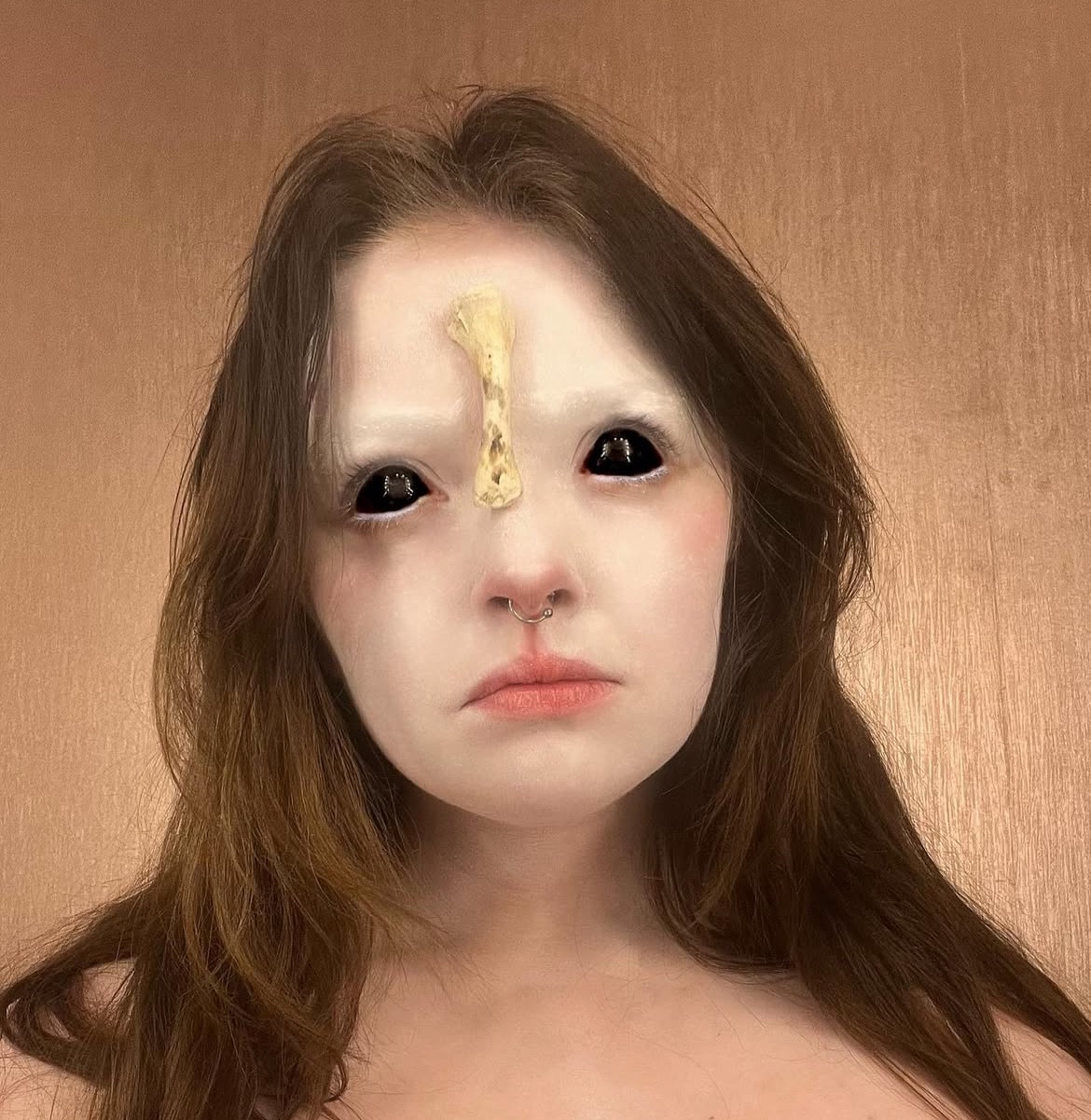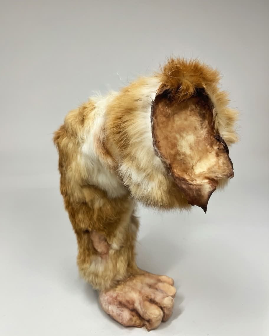 Made from Latex, silicone, plaster, oil paints, rabbit fur and deer skin.