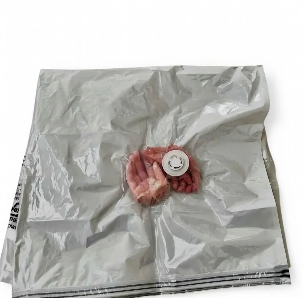 Vacuum-sealed hands made from silicone resembling meat packaging